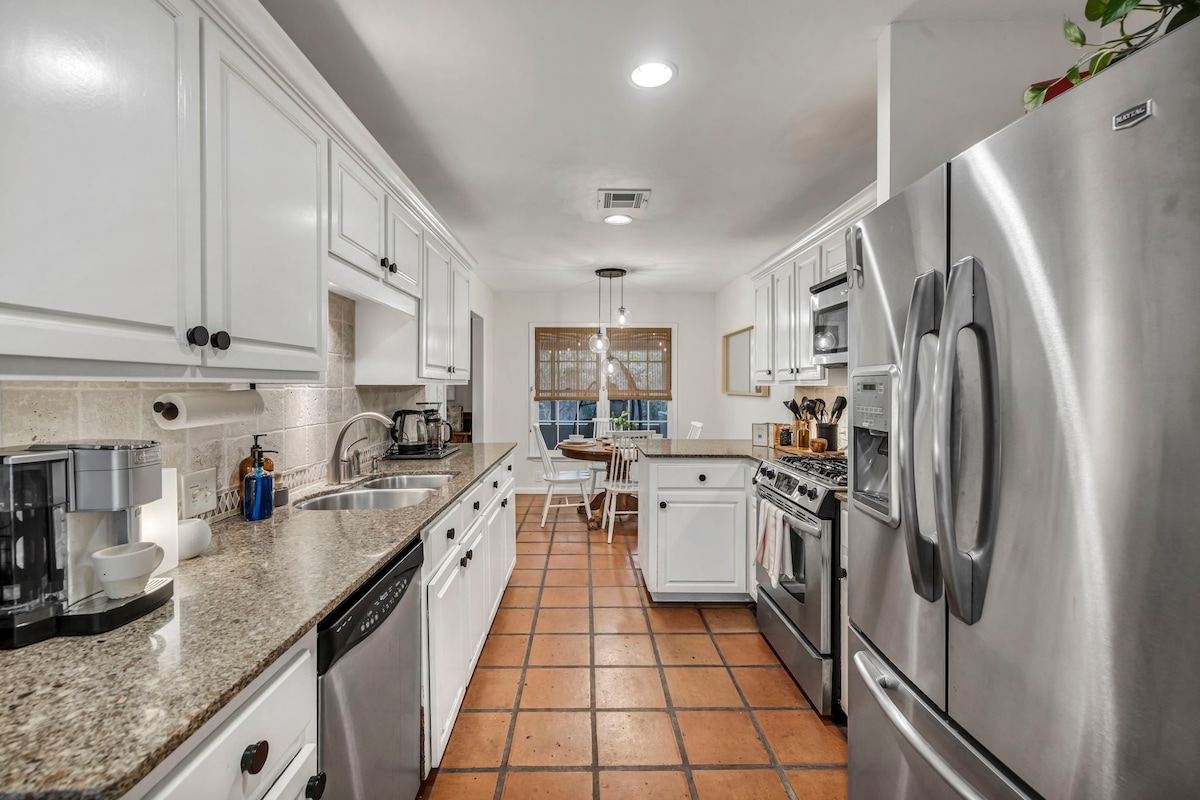 Austin Guest Favorite ⭐ A cozy home away from home - solid furniture & quality mattresses make it easy to settle in. No cookie-cutter Airbnb vibes here! Highlights • Pet-Friendly: Large yard • Sleep Well: Luxe mattresses + soft linens • Thoughtfully stocked Kitchen • Outdoor Living: Covered patio for dining/coffee • Fast WiFi: 1Gb fiber internet • Nature Nearby: Miles of trails 5 minutes away • Great Location: Near Austin’s best food and attractions • Sparkling Clean: Meticulously maintained
