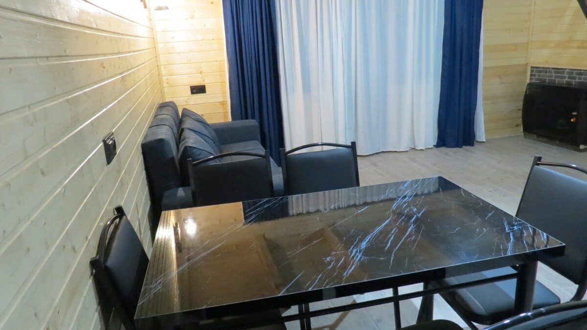 Escape to the breathtaking beauty of Georgia and immerse yourself at our stunning 3-bedroom, 2-bathroom Eco-friendly house in the heart of Saguramo. Nestled within the scenic Tbilisi National Park, our modern wooden retreat offers a truly unique getaway experience. Explore the rich history of Georgia as you're conveniently located near the Ancient City of Mtskheta, a UNESCO World Heritage site. Supermarkets and pharmacies are a mere 200 meters away, ensuring you have easy access to essentials.
