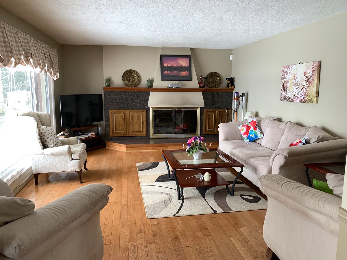 A tranquil, beautiful & cozy 4-bedroom home for families and friends getting together. Walking distance to lake, groceries, LCBO, pharmacy, pub and restaurant. Close to numerous resorts and parks for summer and winter fun. Spacious kitchen and backyard deck are fully equipped with all your needs. Guests will enjoy all the entertainments both inside and outside all year round.. Daily rate is for 8 guests or less. No parties nor smoking allowed.