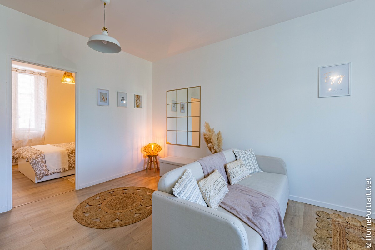 Very nice little apartment completely renovated, on the 1st floor, located 7 min walk from the train station and 3 min from the city center. Free street parking + free parking 100 m away Equipped kitchen with everything you need to cook: gas stove, microwave, fridge, Senséo coffee machine Separate bedroom with storage (closet, dresser) + TV + WIFI Bathroom with shower and toilet: hairdryer, iron, towels, shower gel, shampoo Linens and towels provided