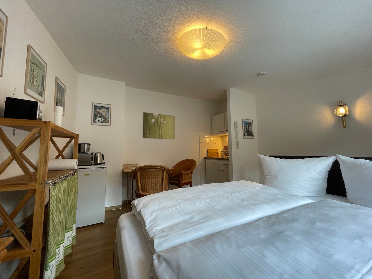 The homelike studio at "Das Kutscherhäuschen" features wooden floors, solid wood furniture and soft lighting. It has a flat-screen TV with satellite channels, a seating area and a terrace. The kitchenette is well-equipped for preparing home-cooked meals. Alternatively, several restaurants and cafés can be found within a 10-minute walk. Warmly decorated studio offers free Wi-Fi, a kitchenette and a flat-screen TV with satellite channels.