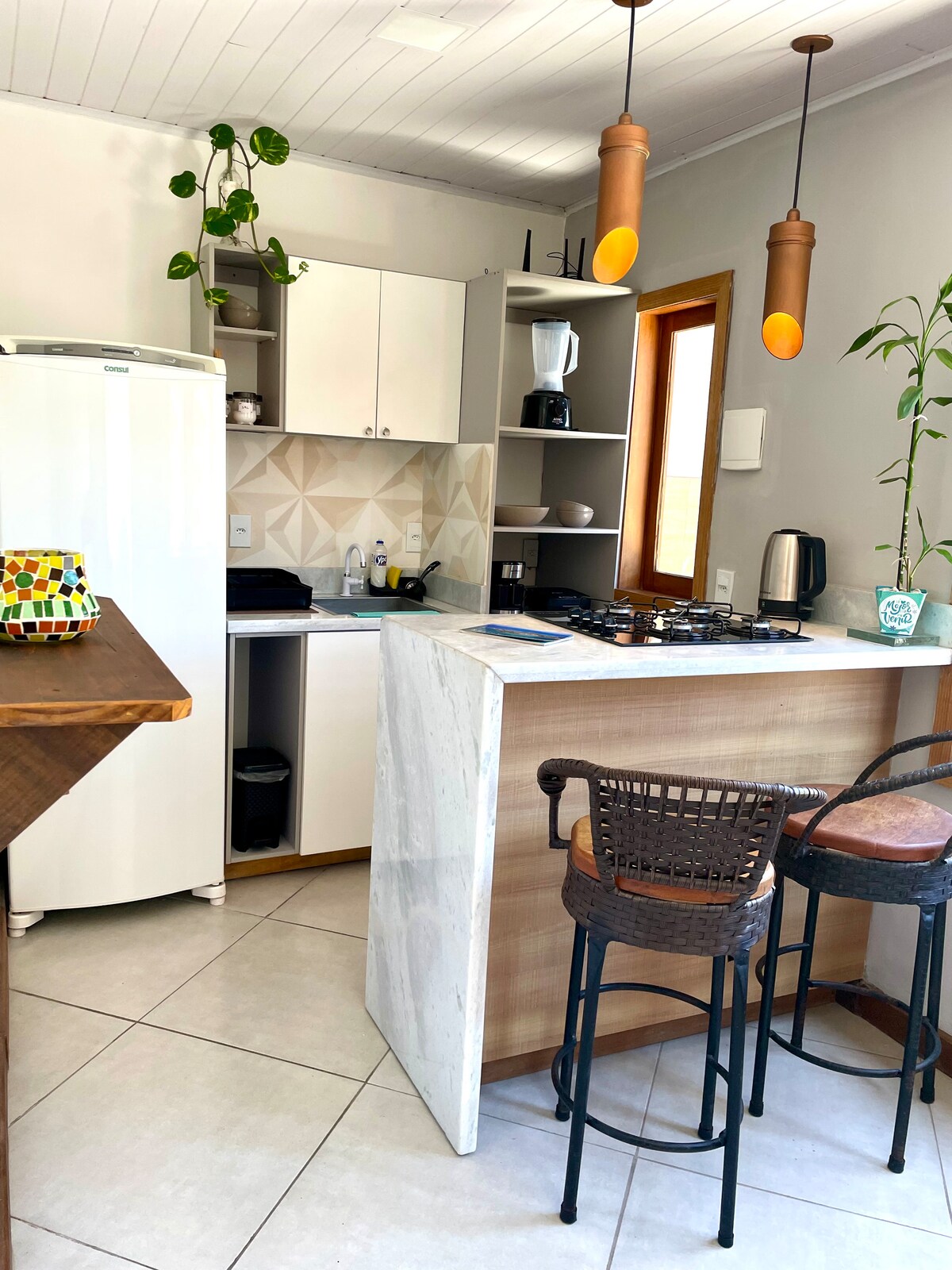 🏖 Charming apartment in Búzios, just 150 meters from Geribá beach. Ideal for couples, families or friends, with a capacity of up to 4 people. It has a bedroom with a double bed and a twin bed, air conditioning, Smart TV and WiFi. Equipped kitchen, modern bathroom, internal patio with table and chairs and external patio with grill and laundry. A comfortable and conveniently located space to enjoy your days in Búzios to the fullest.