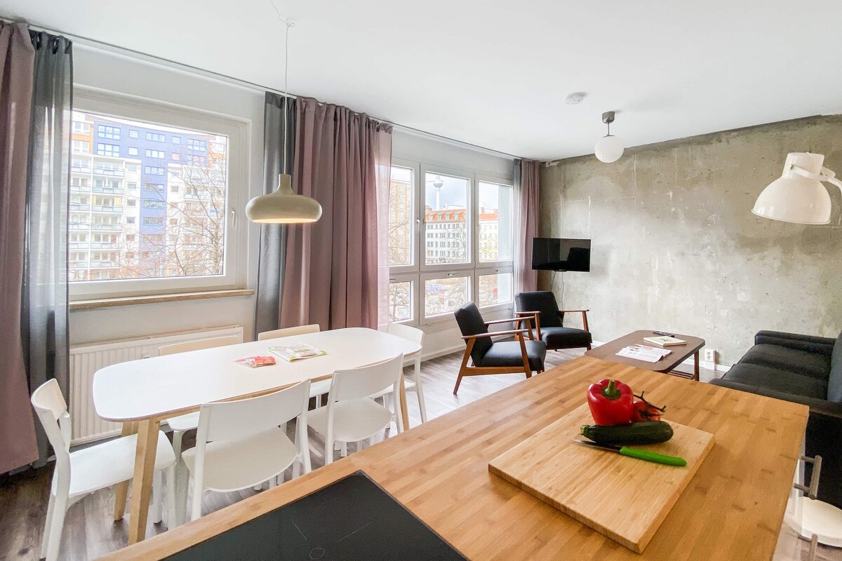 This light and clean apartment is located in a tranquil area in the heart of Berlin. Conveniently situated for transport connections, close to Alexanderplatz. Modern, comfortable furnishings. Private parking spaces at the building (requires a reservation). The apartment has super-fast fibre optic broadband Wifi. Linen, bath and hand towels, skin-friendly soap, and green electricity included. There are no additional charges. We love families - children up to 12 years are free of charge.