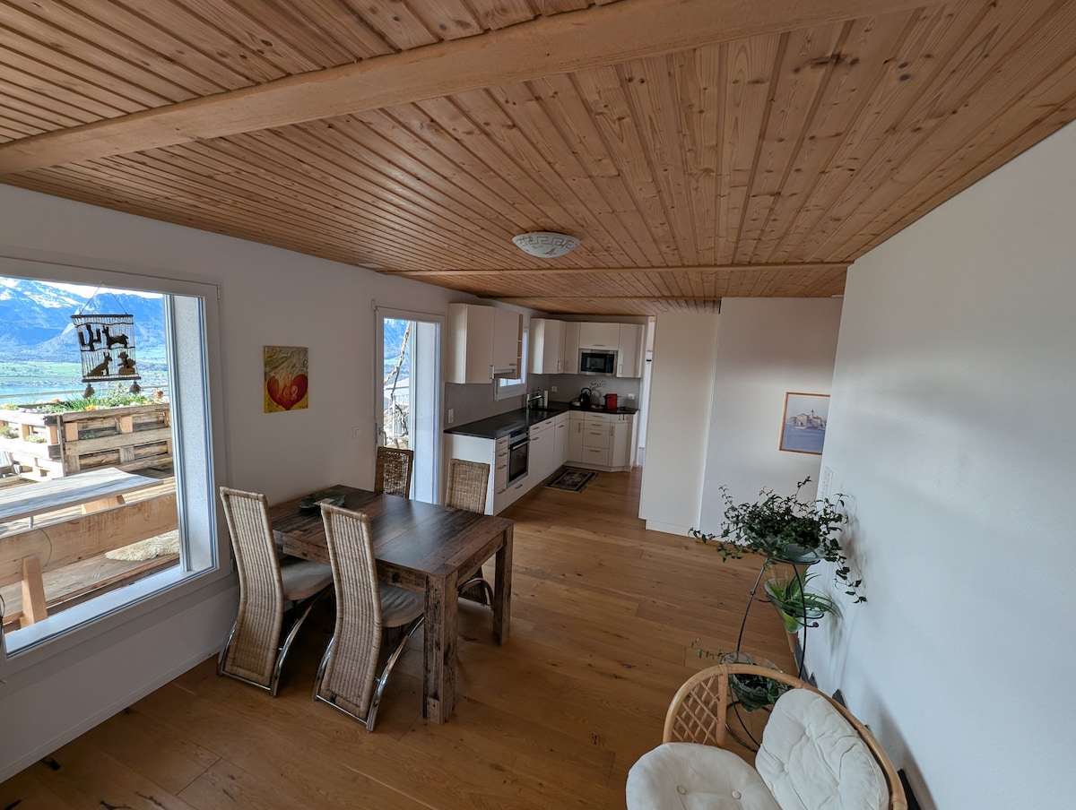 A chic boutique apartment with a breathtaking view of Lake Thun and the surrounding mountains of Bernese Oberland. Our newly renovated 3.5-room apartment with a lovely gallery has everything you will need for a memorable stay with us in Sigriswil. Special offer: FREE ENTRANCE TO THE SPA OF SOLBADHOTEL SIGRISWIL DURING YOUR STAY WITH US! FREE EXTRAS: parking, tennis, washing machine and dryer, air condition For more information: panorama-apartments .ch Insta: panoboutiq