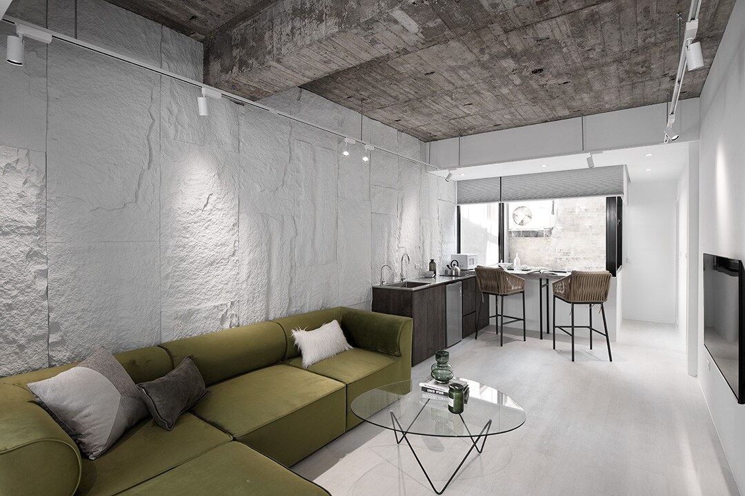 室內的灰白主色,配搭北美木紋銅色傢俱及家飾, 用心為您的居住空間提供沈靜優雅的感覺。日韓系電器的選用,不論是無線充電藍牙喇叭,大螢幕伸縮高清電視,都能滿足您對影音效果的要求。房源位於高樓內縮樓層,阻絕不必要的噪音並滿足您對景觀,安靜及隱私的要求。大樓並配有全天候警衛,住戶專屬電梯,公用大露台,以及地下收費停車場, 位處西門町核心路段,無論搭乘捷運或自駕都非常方便。Earth tone- based interior design offers warming, calm, healing and delighted atmosphere. Room facilities, including double bed, en- suite bathroom with shower enclosure, air conditioning, smart 4K TV with movies/Netflix, WIFI internet, cove lighting and music player with wireless connection & USB charger ports.
