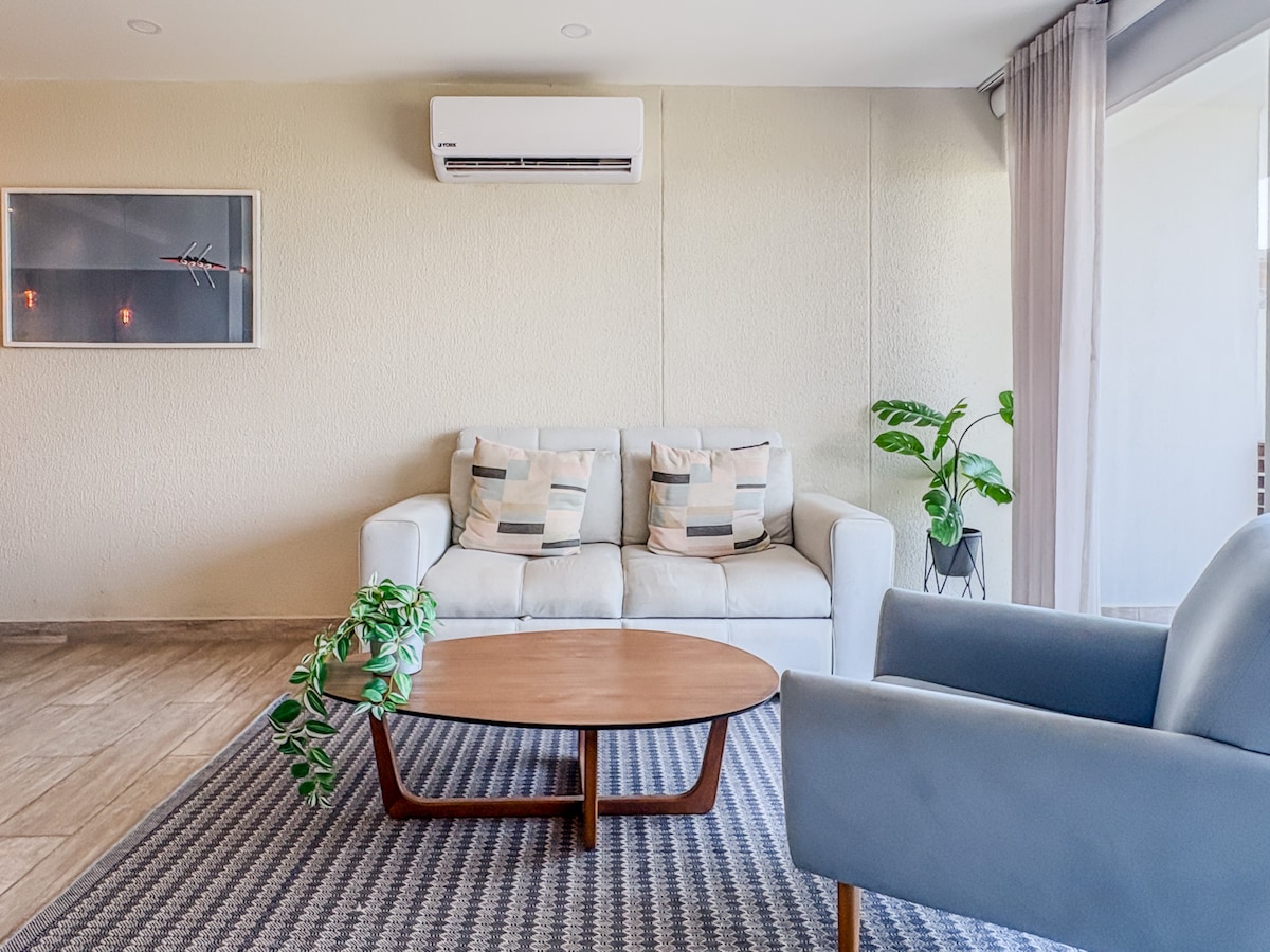 Our elegant apartment is located in one of the most complete and modern buildings in the exclusive "Cielo Mar" sector, a few meters from one of the best beaches in the city "Playa Azul", 10 minutes from the Historic Center and 5 minutes from the airport . . The apartment has an Extraordinary view of the Bay and the Ocean that you can enjoy from the private Jacuzzi on the balcony or in the incredible infinity pools on the Rooftop that have Jacuzzis, Sauna, Terrace Bar & BBQ