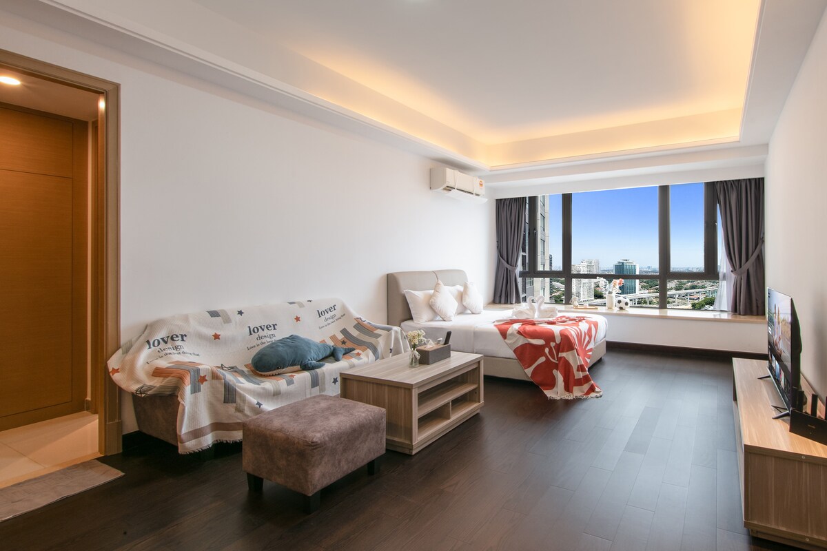 My apartment suitable for 2 to 4 pax which a bedroom with 1 queen bed and queen sofa bed in the living room. Kitchen amenities are well prepared for cooking. Such as fridge,microwave,rice cooker and wok/pan. We have installed 1 air conditioning in bedroom and 1 air conditioning in living room. Two working desks , one in living room and in bedroom. A washing machine is at laundry yard and only for guest who book this apartment.