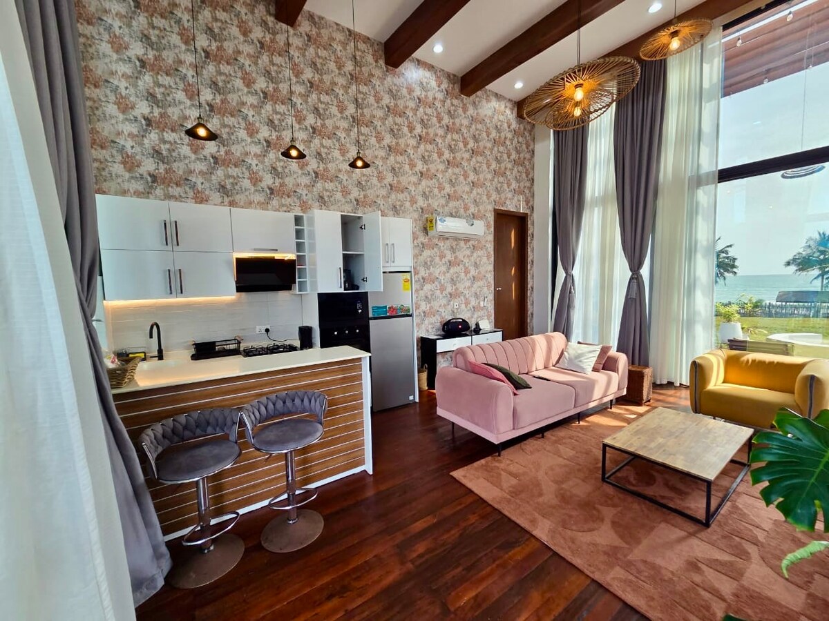 Enjoy the glamour of this stylish, upscale home. You are always steps away from the beachfront. Less than a hour from Accra! With big bay windows the ocean is at your doorstep; and should you choose you have the ability to enjoy the gentle sea breeze on the rooftop or at the lower level to dip your toes in the sand! Truly a serene, picturesque setting with lots of privacy! Guests can host get togethers in downstairs lounge!