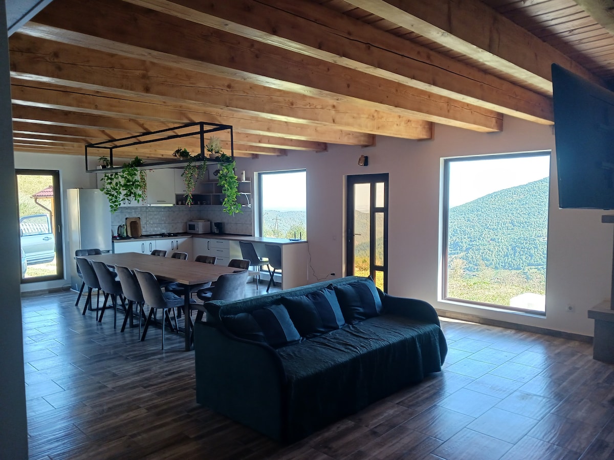 The Panoramic Shelter offers an authentic mountain experience at Muntele Rece, with a stunning panoramic view. With a spacious living room, fully equipped kitchen and elegant bathroom on the ground floor, and upstairs, three bright bedrooms and an additional bathroom, it ensures comfort. Modern amenities such as 4K TV, Netflix, Wi-Fi and barbecue terrace complete the relaxing experience. It is the perfect place for mountain adventures or relaxation in a picturesque area. The capacity is 6 people. We are waiting for you.