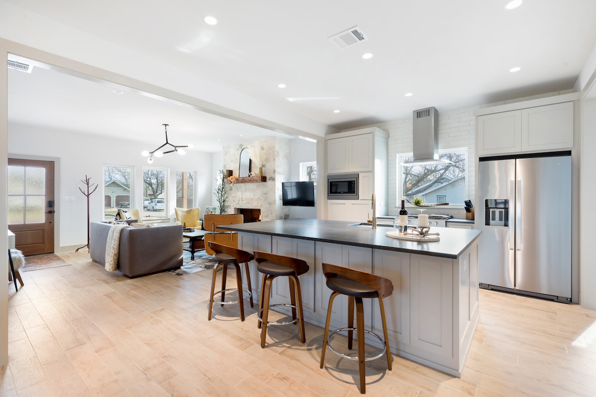 Escape to Laurel Haus, a beautifully renovated vacation rental just two blocks from downtown Main Street in Fredericksburg, Texas. This renovated house offers modern luxury and charm. The spacious home sleeps 6 in 2 bedrooms + a Loft—two king suites and two twins—and has 2 full bathrooms. Relax on the patio, gather around the fire pit, or unwind after exploring Fredericksburg’s wineries, shops, and Texas Hill Country. Book now for a memorable wine country retreat in Fredericksburg!