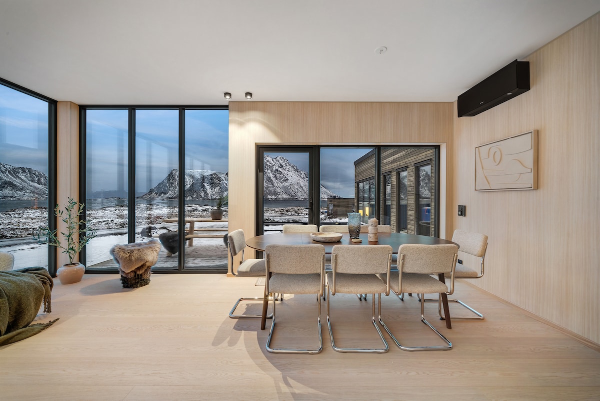 This home has stood by the sea since the late 1800s, shaped by weather, tides and generations before you. Carefully restored, it blends original timber walls with modern comfort. Large windows open towards mountains and open water, letting light and silence set the pace of your stay. With three bedrooms, generous living space and a wood-fired hot tub under open skies, this is a place to slow down, reconnect, and experience Lofoten at its most calm and authentic.