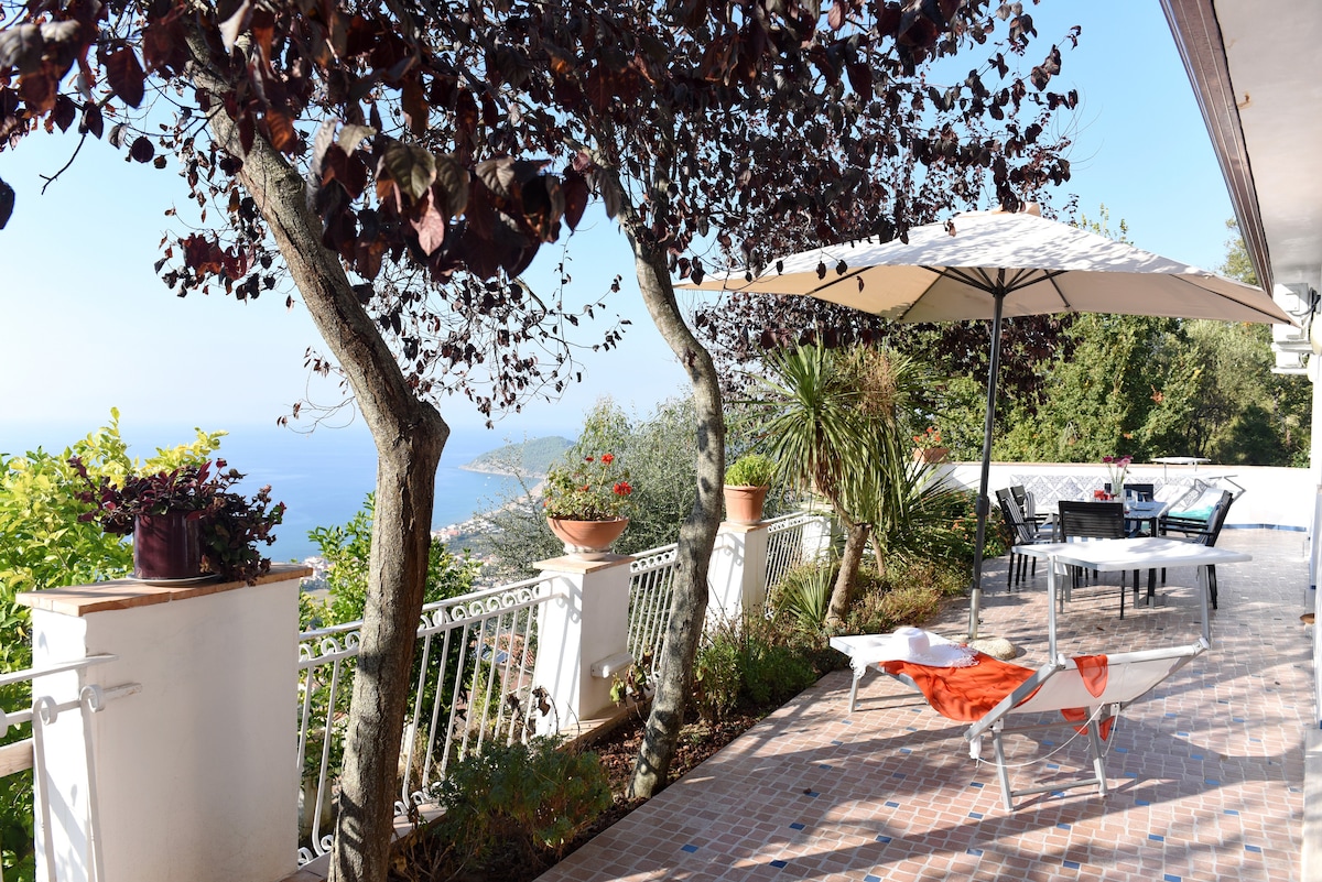 Delightful panoramic stone farmhouse from 1890, overlooking the sea, surrounded by one hectare of olive grove and fruit trees. It has a living room with fireplace and double sofa bed, a bathroom, a fully equipped kitchen, double bedroom and a loft with two beds. It has a large terrace of 70 square meters with a pergola and a barbecue for your dinners. A unique view in quiet and unspoiled environment. Distant 1.2 km from the village and beaches. Satellite Internet with Starlink