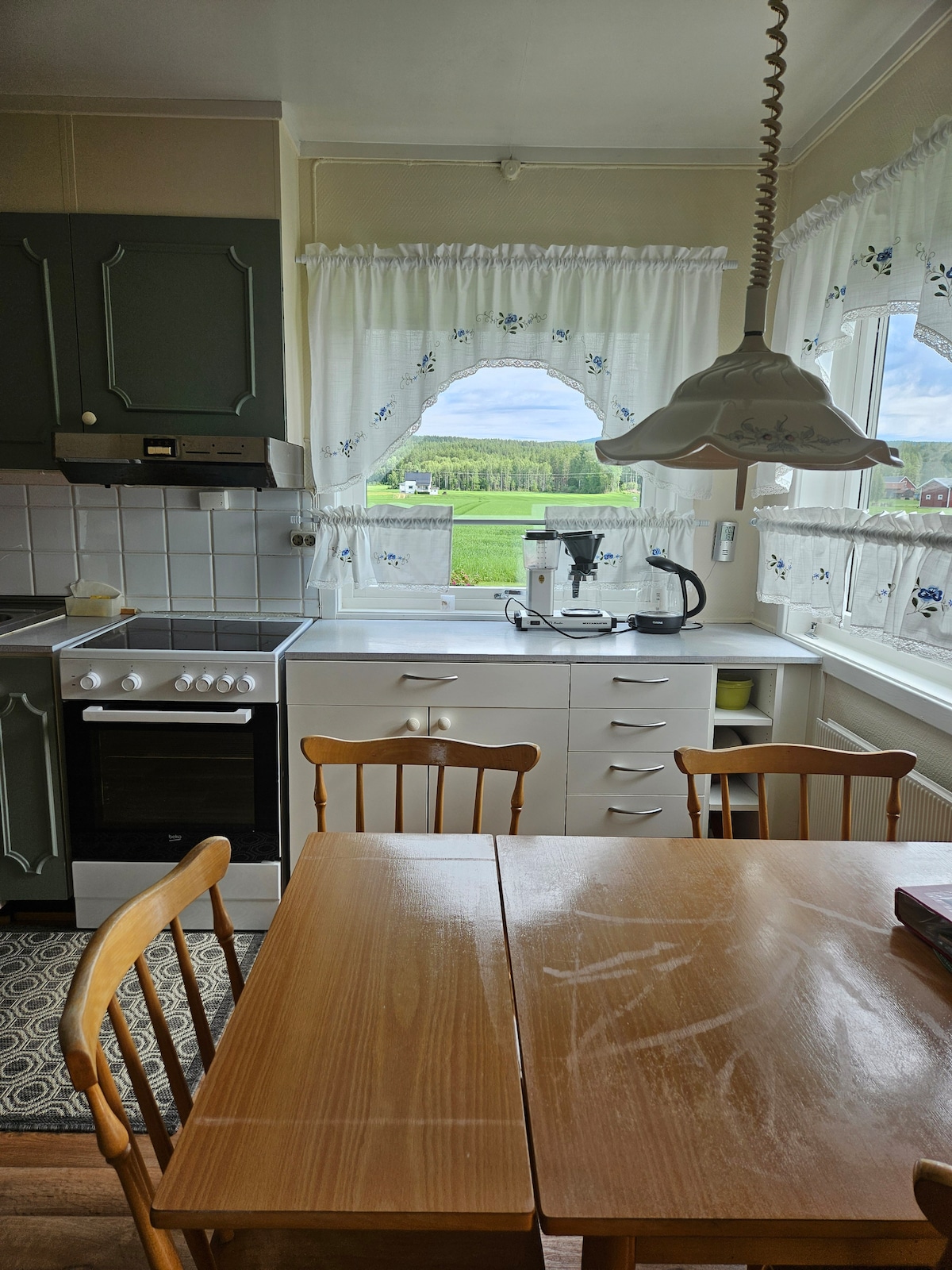 House on a farm close to Finnskogen and great natural surroundings. Older, well-maintained detached house in quiet and peaceful surroundings with good space and short distance to various nature experiences as well as the village of Flisa. Good opportunities for various trips, fishing and a quiet life in the countryside. 25 km from the Swedish border. The location is "in the middle of Scandinavia". 60 km to Kongsvinger, 50 km to Elverum, 80 km to Hamar. The house is located on a farm where we, a couple in our 60s, also live with our dog, Perle.
