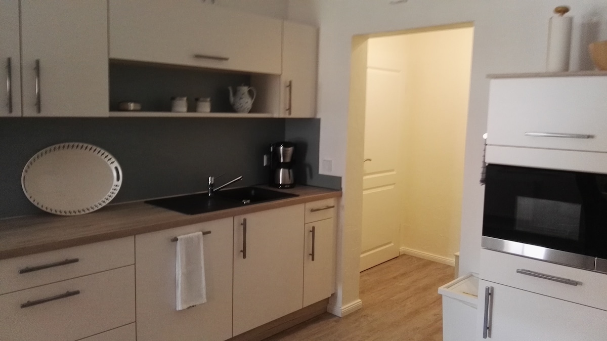 This approx. 37 sqm cozy apartment has been renovated with a lot of love and a lot of natural building materials, so that the charm that such an old house can radiate was not lost. It offers guests a very cozy ambiance in an idyllic garden paradise. Free parking is available right in front of the house. Bikes can also be rented. Various shopping facilities are in the immediate vicinity and are within walking distance.