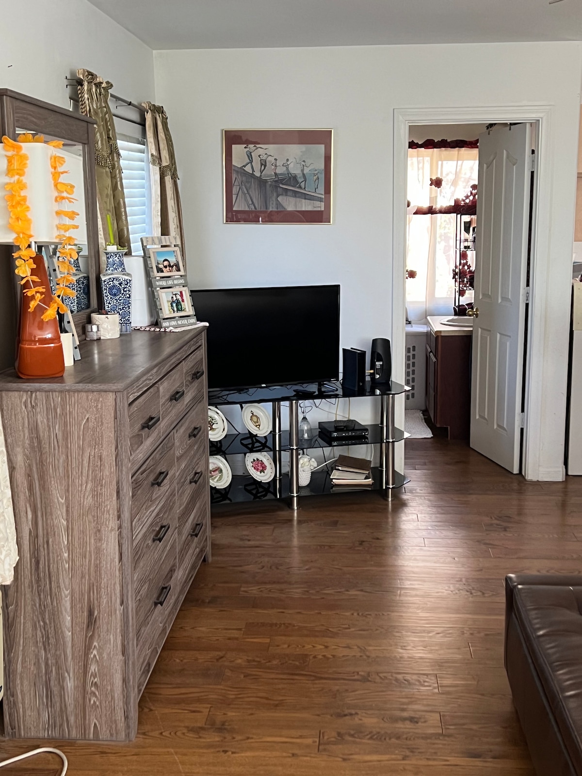 This charming guest house is attached to the main home and sits right on the golf course. It offers self-check-in and self-check-out experience. Inside, you’ll find two cozy bedrooms, a comfortable living room, a fully equipped kitchen, and a private backyard. The location is highly convenient—just a short walk to Ralph’s and nearby restaurants. Costco is only 2 minutes away, while the popular Ontario Mills and Victoria Gardens shopping centers are both within a 15-minute driving.