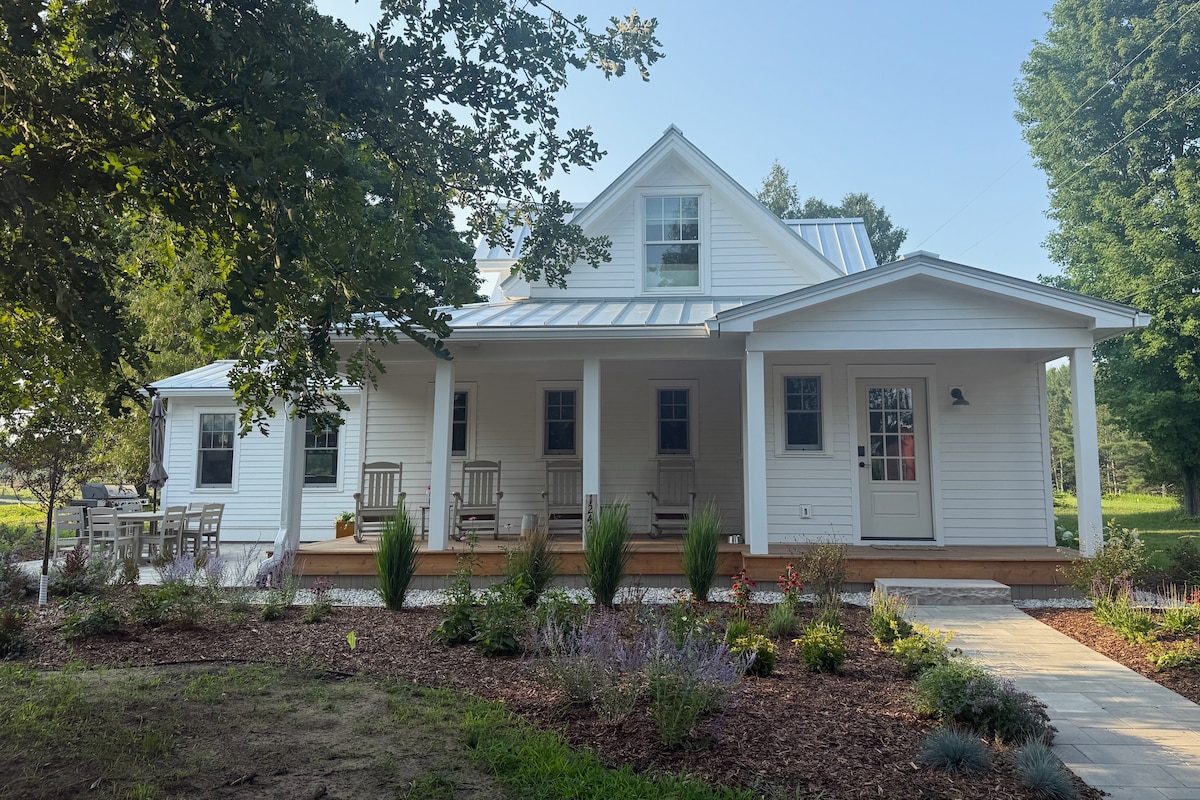 Clean, new home (in 2020) with 6-person hot tub is less than a 4-minute walk to Lake Michigan, and 3-minutes to downtown Empire. In the heart of Sleeping Bear Dunes National Lakeshore and its amazing trails, there is over 1400 square feet of indoor living space, plus 1000 sq feet of covered decks. The location offers easy access to a variety of outdoor recreation, Leelanau Wineries, and is 25 miles to Traverse City shopping and nightlife or 25 miles to Crystal Mountain Skiing!