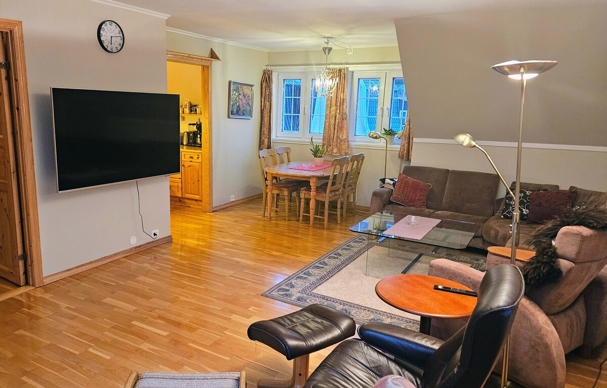 A sunny and cosy apartment in a quiet location. Located on beautiful Panoramavegen, in the middle of beautiful nature, close to the ski slopes (Fjelli 5.5 km , Ullsheim 18km) and a winter ski center in Stryn (20km). Lots of possibilities for nice walks and bike rides. In the vicinity "open air museum" Sagedammen with possibility of picnics for the whole family. Loen with its fantastic Skylift and Via Ferrata (18km) Briksdalsbren (28km) and Kjendalsbren (30km). An ideal place to relax with the whole family, both winter and summer.