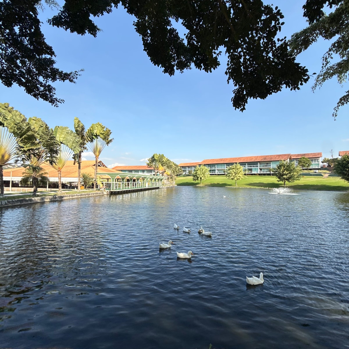 Relaxe com toda a família nesta acomodação tranquila. Um clima super agradável de campo, com toda estrutura de um Resort. Flat térreo equipado exceto roupa cama e banho Acomoda até 8 pessoas ( contando com crianças) Possui 1 banheiro 2 quartos Cozinha Sala ampla Varanda * Hotel fazendo oferece várias opções de lazer e entretenimento para crianças e adultos. Varias piscinas, espaços kids, campinhos, fazendinha, passeio a cavalo entre outros... - Serviço de camareira diário até as 15h