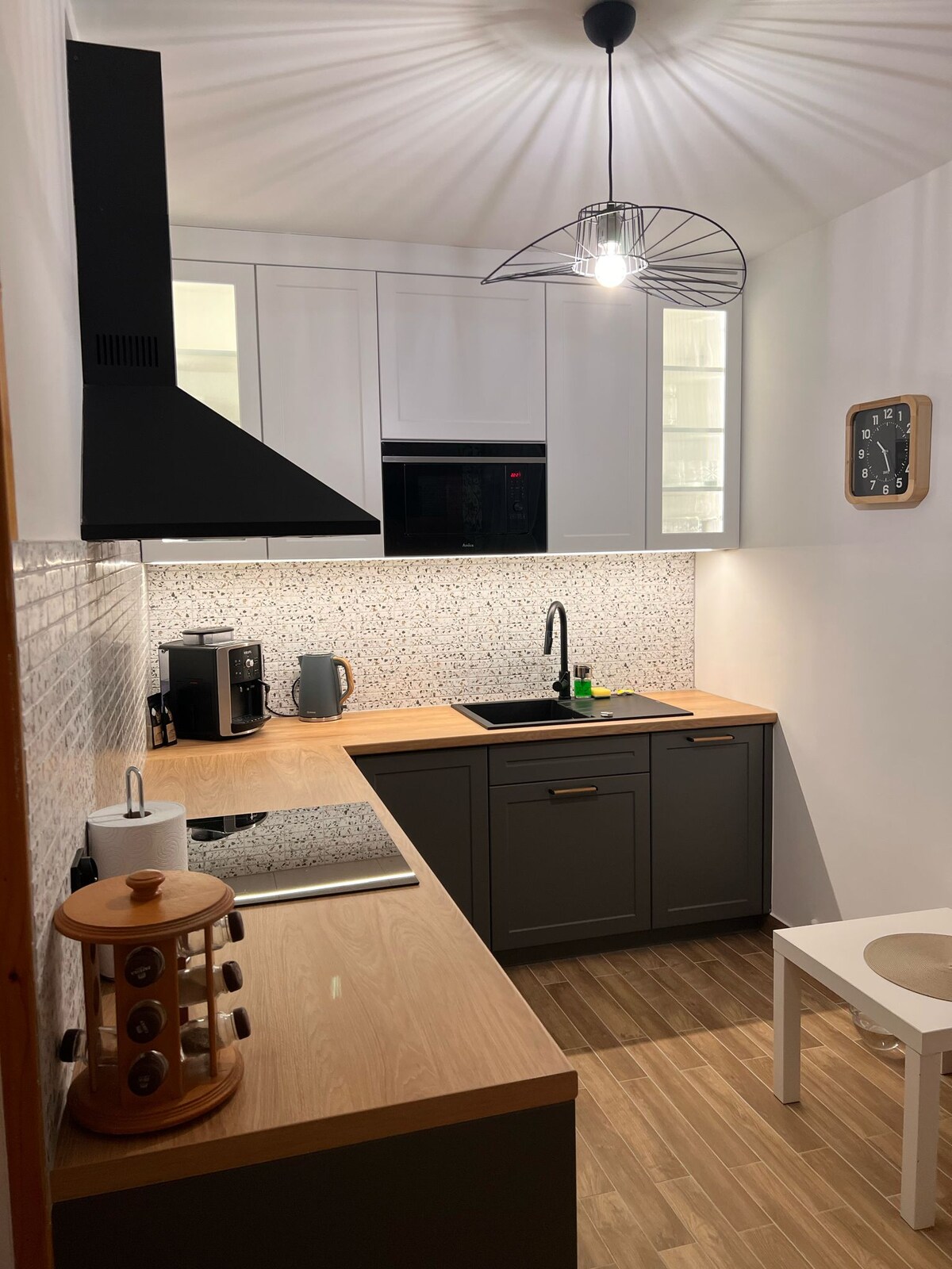 Our 6-person cottage is located in a picturesque and quiet village. The proximity of the forest and the most important attractions of the region makes this facility a great place to relax and a very good base. The cottage is equipped with many amenities such as a projector and a coffee machine. There is also a hot tub with air and water jets. The hot tub is additionally payable and the price depends on the number of days. The area around the house is fenced, so you can safely bring your dog.