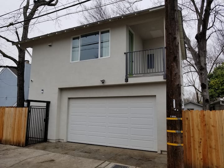 This new 500sf one-bedroom Guesthouse is located above the garage behind our 1920’s bungalow with free driveway parking. Walk to Golden One arena, Old Sac, the state Capitol; Crocker Art Museum, river bike trail and restaurants. The private guesthouse is steps from Sac’s largest Farmers Market and Southside Park lake, playground, pickleball/basketball courts, city pool. Sac Airport (SMF) is 15 minutes away. Weekly Pickleball Tues/Thurs-5pm, Sun 12.