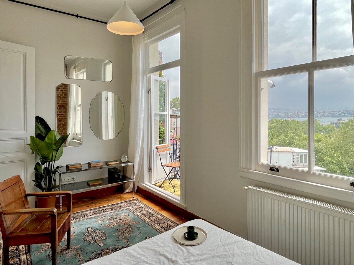 This stylish, well-decorated (all wooden furniture is handmade), spotlessly clean, large, and unique suite has a high-quality bathroom and elevator in the great location in the Beyoğlu/Taksim district. Moreover, the magnificent panoramic view of Bosphorus (till Prince' Islands and Asian side) and Historical Peninsula (Topkapi Palace, Hagia Sophia, Süleymaniye Mosque, Galata Tower, along with other famous monuments) can be seen from its private balcony.