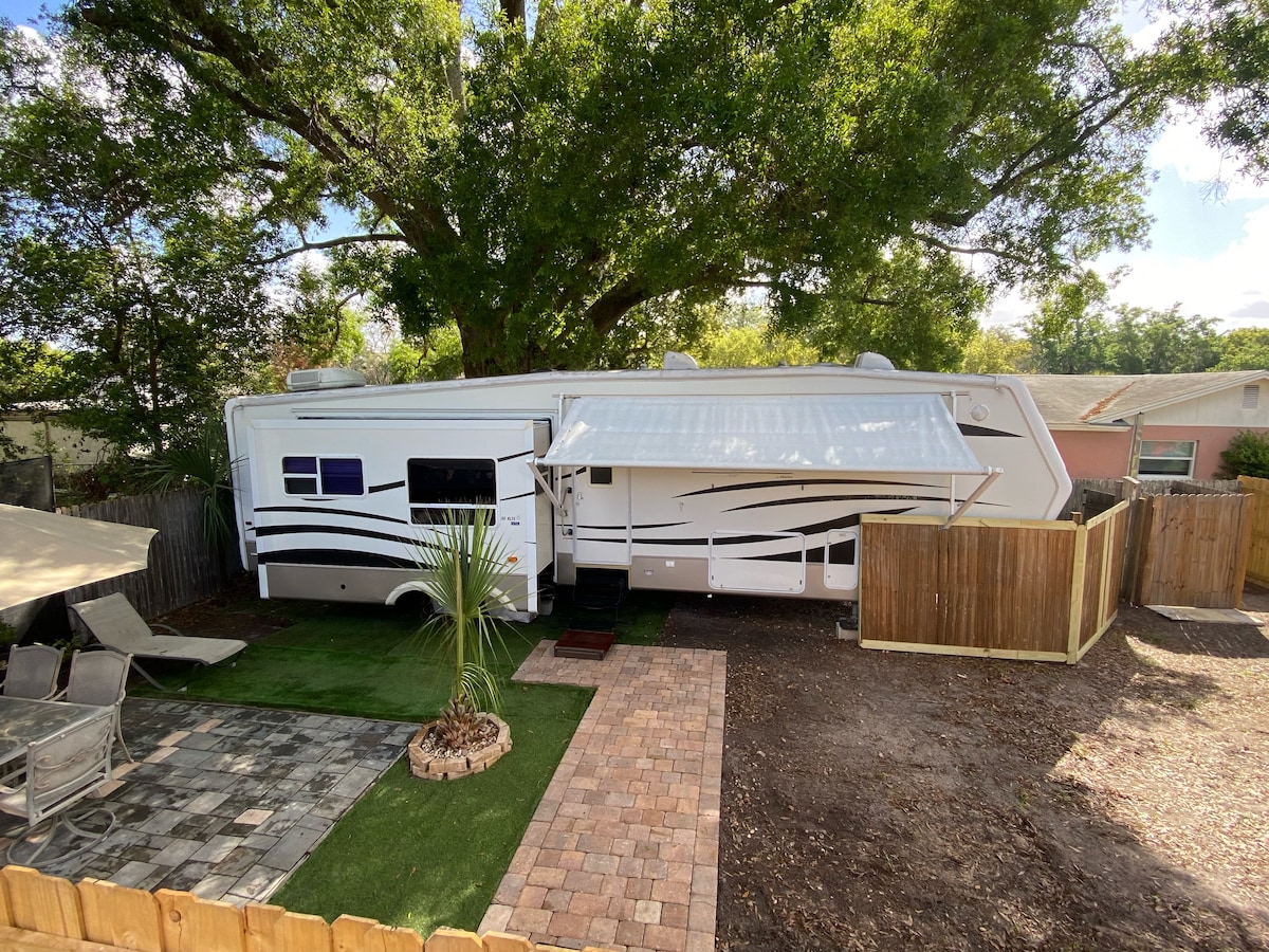 With rustic urban charm, The Little Treehouse "2" is a perfect relaxation spot for your stay in the City Beautiful. This completely renovated 1926 carriage house downstairs unit is a 260 sq. ft. blend of cosmopolitan comfort and enchantment. Located 5 minutes from Downtown, Amway Arena, Camping World Stadium, 15 minutes to Universal Studios, 25 minutes to Disney and an hours drive to Florida's beautiful beaches! *Search "Little Tree House Orlando" in your browser for more info.
