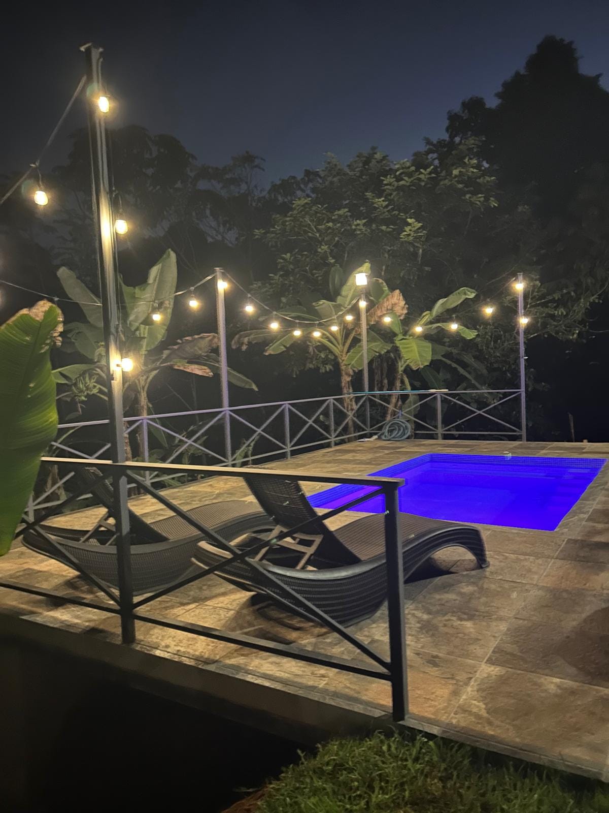 This comfortable beach home is in the desirable Matapalo area of the Osa peninsula and within a day trip to the Corcovado Nacional Park. The house is 150 m from the Playa Carbonera, a 15 minute beautiful walk to Playa Pan Dulce and a 10 minute drive to Playa Matapalo beach. The home is completely off the grid, generating its power from solar, and has many modern conveniences including full size fridge, industrial stove, solar hot water, wifi and a brand new dipping pool off of the deck.