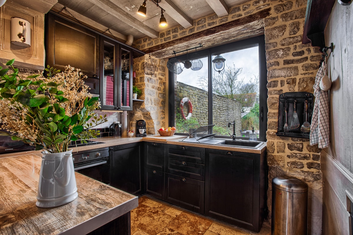 In Le Havre du Hameau Ley, let yourself be charmed by an authentic little stone house nestled in the heart of Cotentin. Here, time slows down: aperitifs and barbecue in the setting sun on a south-west facing terrace, gentle awakenings with the view of a small pond, panorama on a wooded garden... and in the evening, the warmth of the wood stove for cocooning moments. A real haven of calm, ideally located to get away and explore the many wonders of northern Cotentin.
