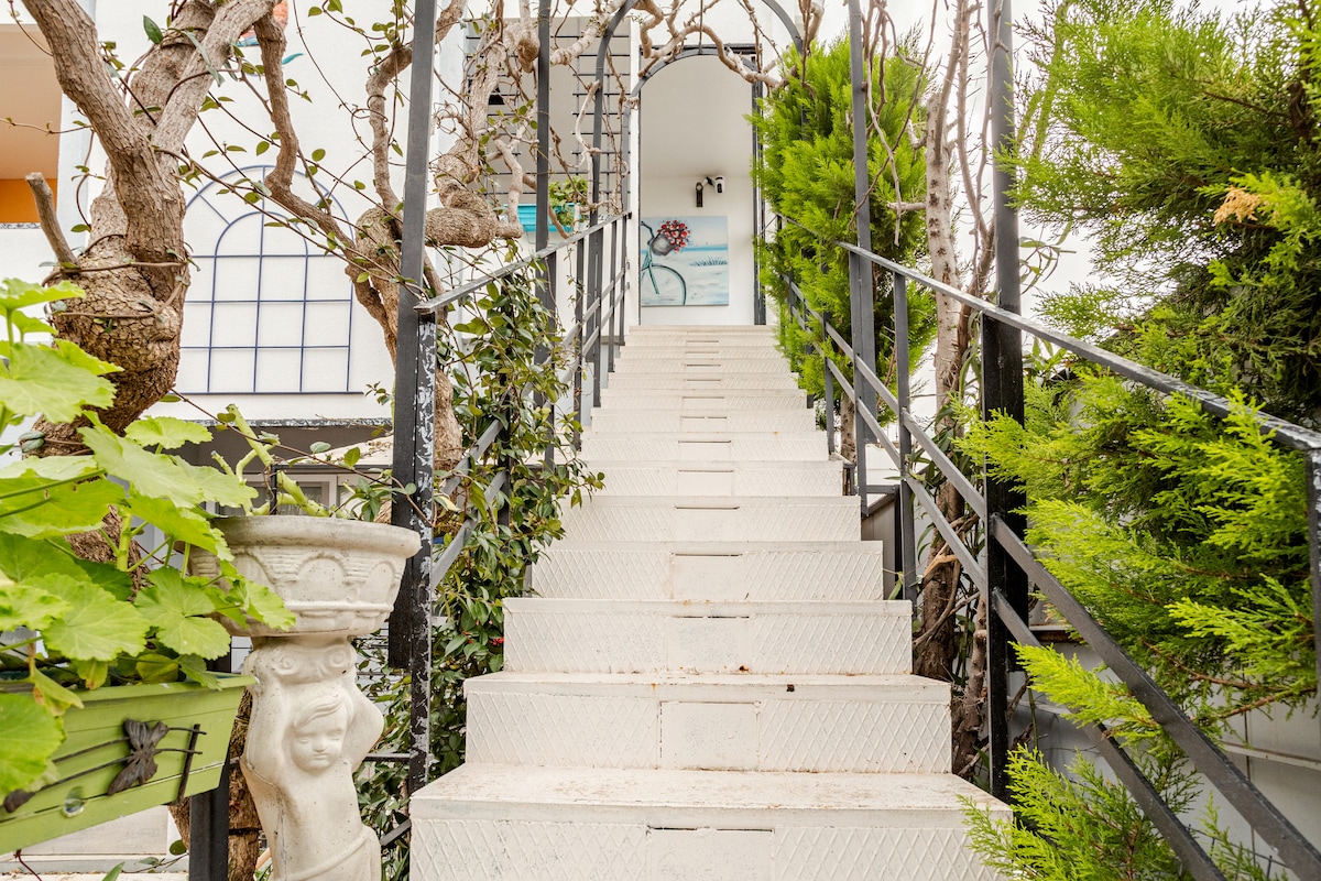 Our house is a 20 minute walk to the seaside. We are living downstairs with two cats and a big dog. I'm writer, my husband is painter. İt's in a quiet and calm region surrounded by greenery and flowers. If you think they can deal with our animals you can bring your pets with you. And the house is not not suitable for children under 15 years of age. IMPORTANT NOTE: The house and the neighbourhood would not be convenient or suitable for conservative family.
