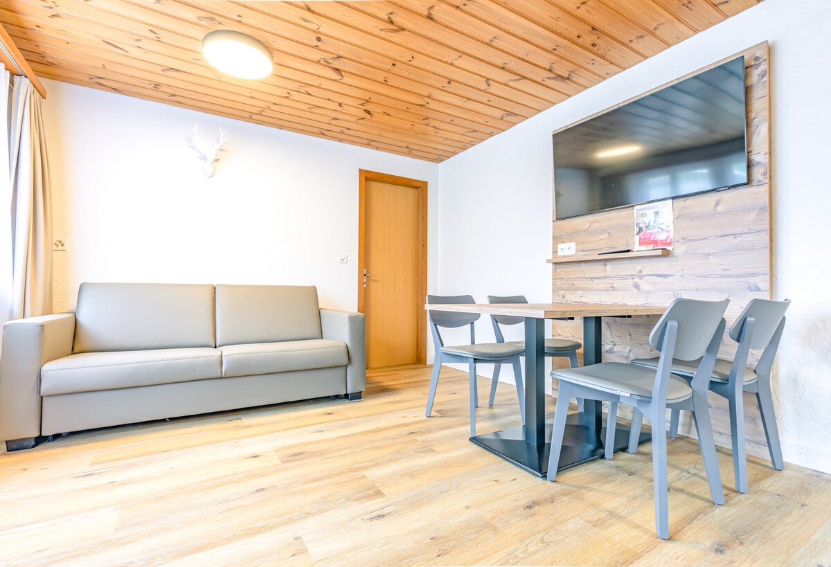 The "Uszit" room is intended for people who need a break. It is a room with access to a balcony with beautiful views and of course to a private bathroom. In the room you will find the classic amenities. A bed, couch and also storage space for your clothes. Small but nice. Price includes tourist tax of CHF 4.30 per day.