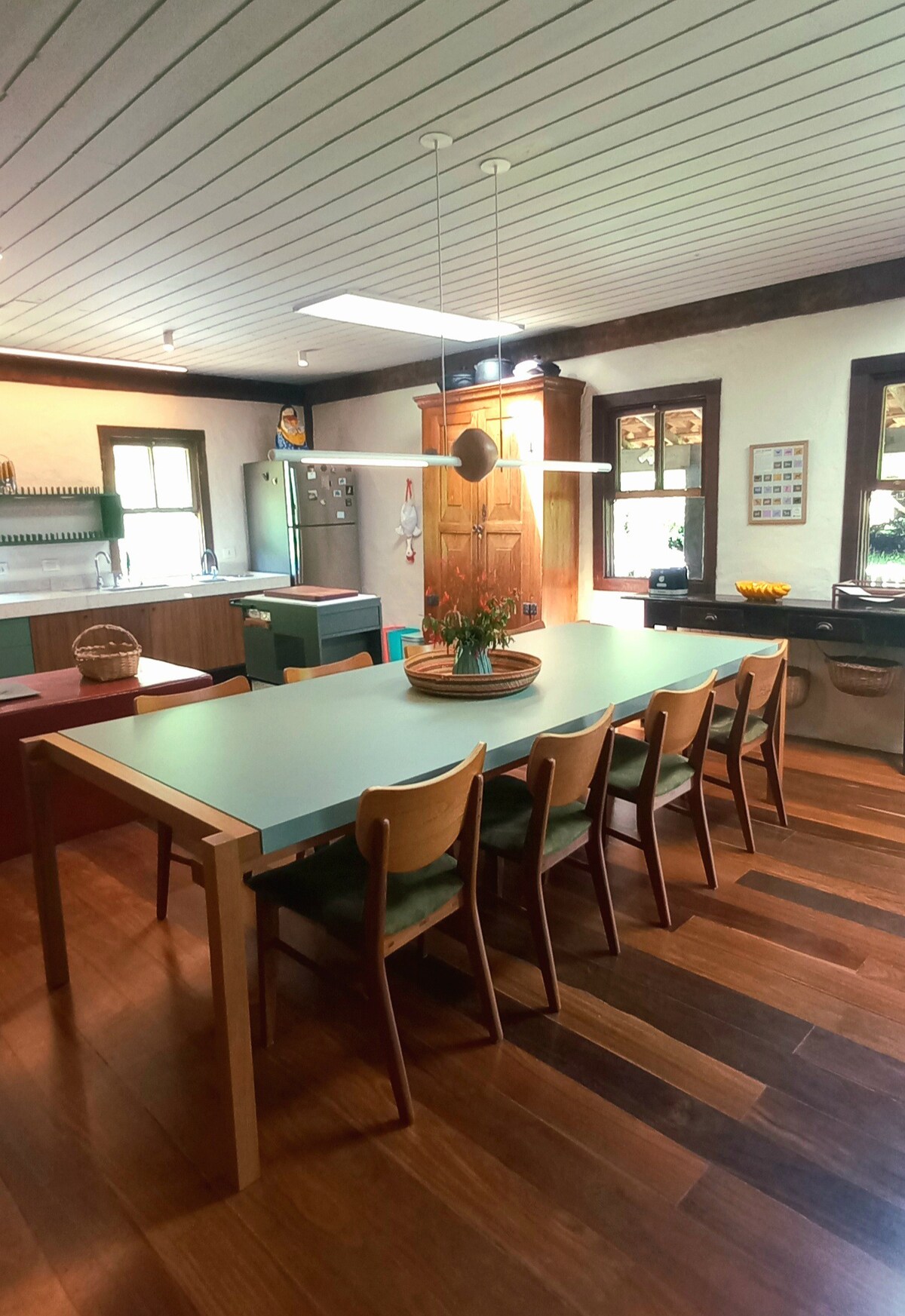 At an elevation of 1,600 meters, at the foot of Pedra do Forno, the site is almost entirely covered by native vegetation. Overlooking Pedra do Bode, the house is surrounded by araucarias, where armadillos, monkeys, birds and deer (possibly wild boars) pass by. Centuries-old windows and doors, lots of glass, 1950s furniture. Warm bath, with gas heating. Gourmet kitchen with wood-burning stove, barbecue, electric oven, modern stove and dishwasher. Wi-Fi with good speed.