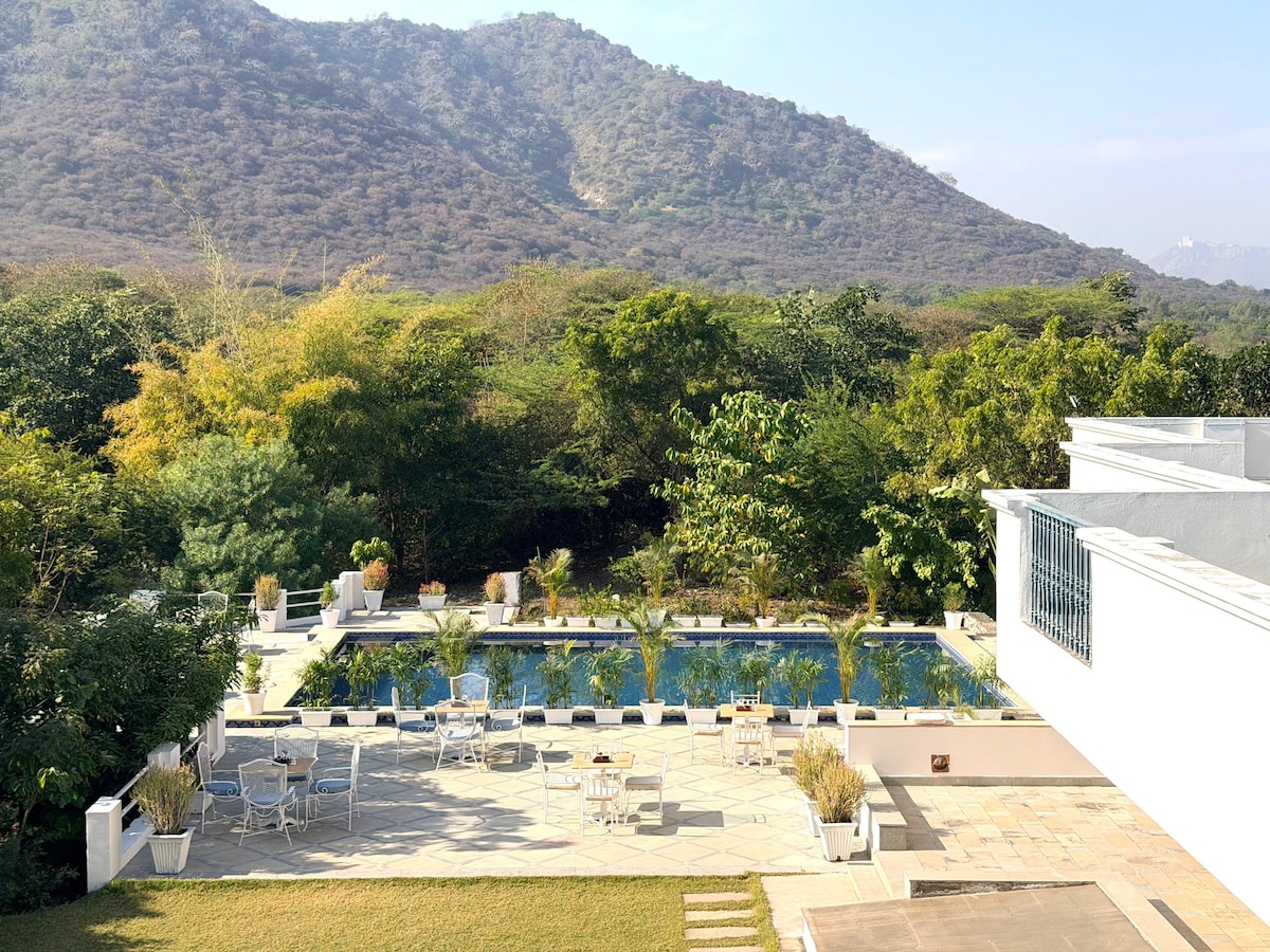 Imagine a cosy 2-room retreat with a private plunge pool & stunning views of Sajjangarh Palace. Ideal for a peaceful getaway, this pet-friendly haven has well-appointed rooms & a stunning terrace where you can enjoy meals with a view of the Aravali Hills. The terrace offers a dedicated yoga nook for calm moments and plenty of space for fun and adventure. As the evening sets in, gather by the bonfire under the stars and enjoy some al fresco dining – the perfect end to a perfect day.