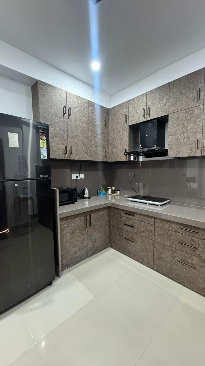 Relax with the whole family at this brand new apartment. Located only 5 km from the airport and surrounded by a scenic view from the balcony. The house is equipped with a TV, Refrigerator, water heater, water purifier and has a fully equipped kitchen for usage. It has a queen size bed and cupboard with locks for your valuables. Both local and outstation Guests are welcomed for their stay!!