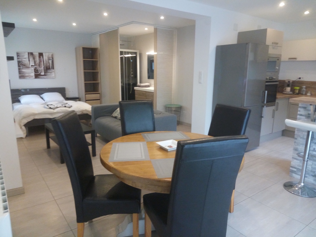 Welcome to L’Émeraude Discover our 3-star ⭑⭑⭑ studio, designed to offer a comfortable stay, whether for a business trip or a short getaway in Metz. The studio includes a fully equipped kitchen, a comfortable sleeping area, and laundry facilities. 🚗 Free private outdoor parking (not secured). Located in a residential neighborhood: 📍 3.8 km from Metz city center 📍 1.8 km from the train station and the Centre Pompidou ⬇️