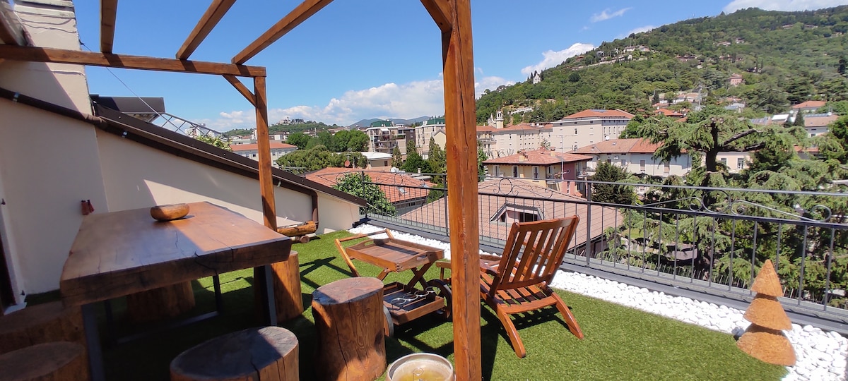 Bright and original apartment few meters from the lake, with a large terrace on which to dine including a relax area surrounded by our nice succulents. In a quiet and residential place. 900 meters from the historic center of Desenzano and 100 meters from lake walk. Partial lake view, the mountains and the green gardens. Spa Shower with turkish bath and chromotherapy. Free parking in the street. 30 minute by car from Gardaland and amusement parks. CIR: 017067-CNI-00733 CIN: IT017067C2DHAHOG7V
