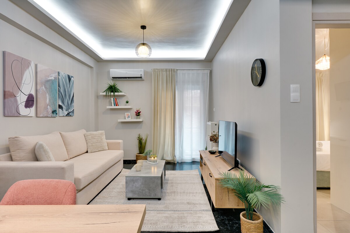 A cozy ,comfort , 5* in cleanliness place, is waiting to host you in the city of Athens and ready to give you the absolute relaxation, after sightseeing in my beloved city. Independent, 2 bedroom apartment with a fully equipped kitchen, flowered balcony, ideal for couples, families ,friends, business travelers (300Mbps wifi)