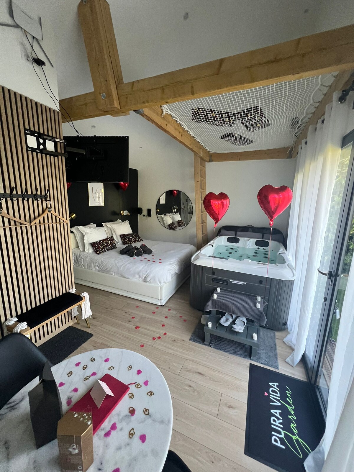 Romantic cocoon with spa and hanging net