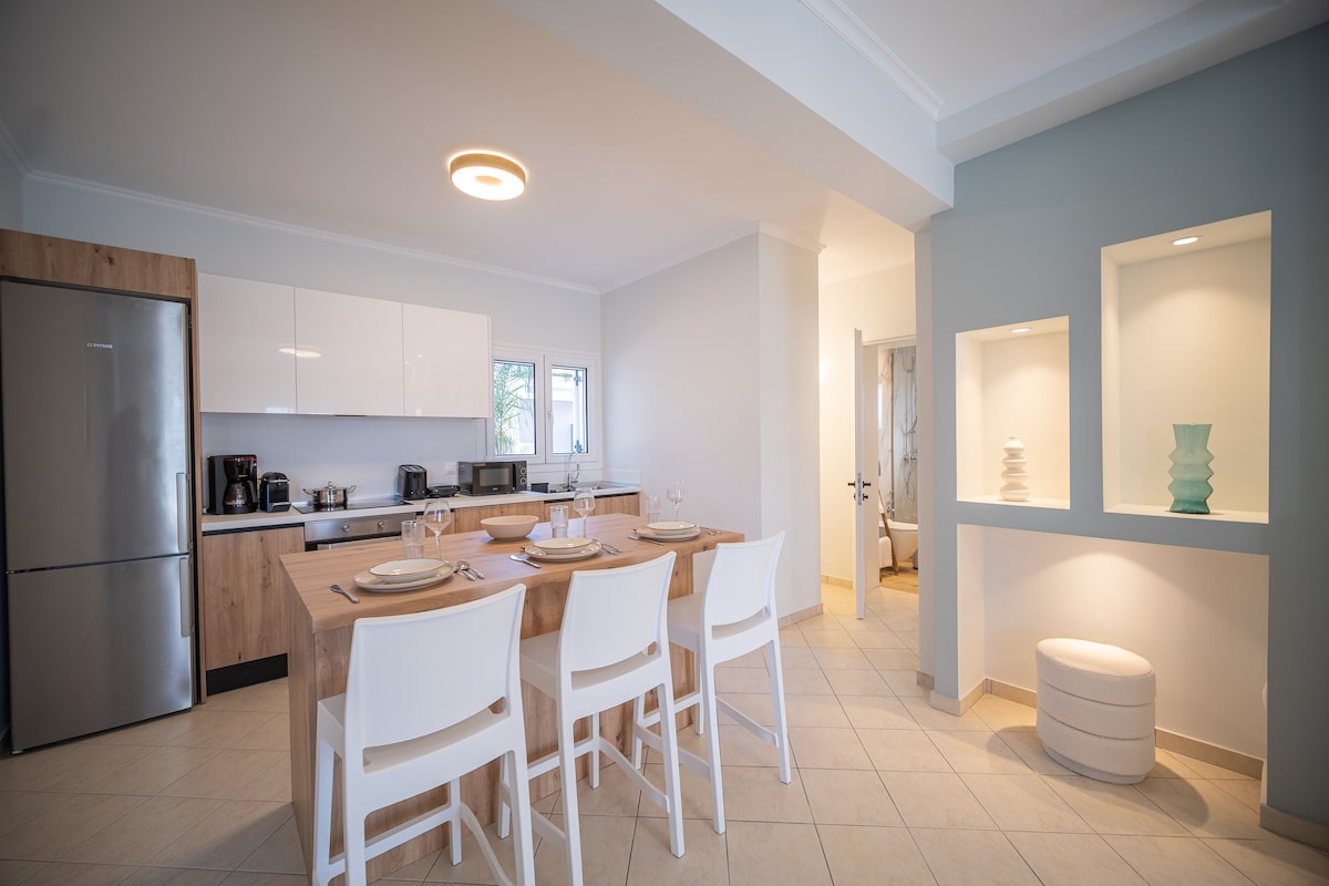 Our apartment is ready to give you special moments on your holidays in comfort and safety. The apartment is a maisonette with a living room, kitchen and w/c on the 1st floor and on the 2nd floor it has 2 large bedrooms, a bathroom and storage room for the washing machine. It is only 4 kilometers from the airport 5 kilometres from the city center. Right next door you will find a supermarket, a bakery and a bus stop. From the apartment you can easily go to the beautiful beaches of our island.