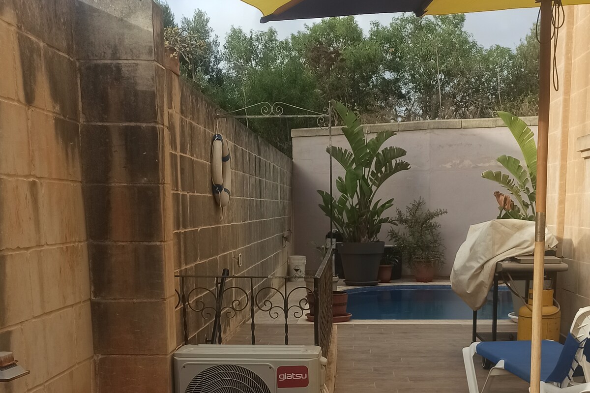 Poolside independent ground floor studio with its own bathroom, living area and kitchenette. Forming part of a 300 year old farm complex, the studio has been beautifully finished by the owners, Nikki & Adrian. The location, in the north-east part of the island, is ideal for access to the beaches in the north as well as the hustle and bustle of Saint Julians. Includes own entrance, gated parking and shared use of outdoor area and facilities (large 50 m² pool, sunloungers, BBQ).