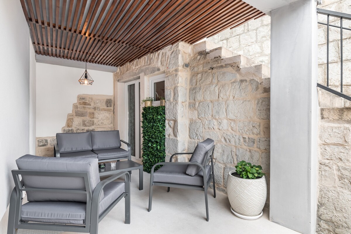 The apartment is located on the ground floor, in the center of Kastel Stari. surrounded on one side by the city of Split, on the other by Trogir and even when you add the beautiful islands nearby (Hvar, Brac, Solta) you have everything you need. The apartment consists of a kitchen, living room, bathroom and bedroom. A combination of stone and wood for a perfect and unique whole. Underfloor heating throughout the apartment and two air conditioners to reflect the modern.