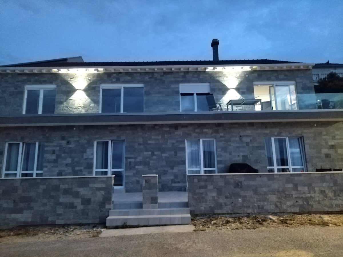 Apartment has 2 bedrooms with big stone beds (200x200), 1 bathroom, living room, kitchen and 2 terraces. It has also free wifi for all guests, swimming pool, parking space, air-conditioning... Swimming pool, barbecue and backyard are shared with guests from other 2 apartments. Pets are welcome.