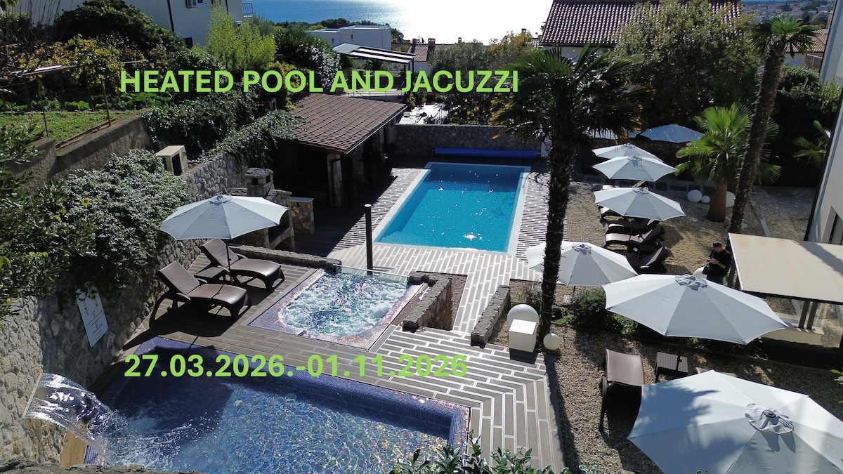 Apartment Rosa is located in the city of Krk, near the city center (700m) and near the beach (600m). The apartment has private jacuzzi, towels, a bathrobe, mini cosmetics, slippers, a hair dryer, an iron, board games, spices in the kitchen, coffee, tea, honey, sugar... If something is missing, I'll bring it to you :) The most important thing is that you have your own peace and a private yard and free&safe parking. Apartment Rosa is pet friendly, each pet has its own bowls for food and water :)