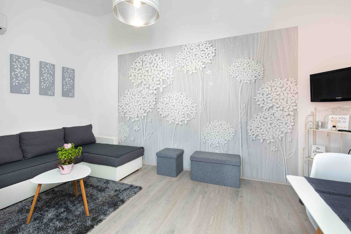 Elegant and modern apartment settled in peaceful and friendly neighborhood. Apartment is on the second floor, packed with two bedrooms , big balcony , bathroom, optimised kitchen , and colorful livingroom. This home unit is perfect for families with kids that would enjoy chilled environment. We have 2 cuddly dogs ( golden retriever and Croatian shepherd), guests can anytime play with them