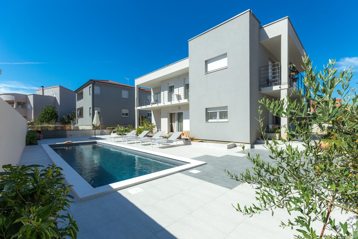 Welcome to your peaceful Zadar getaway! This bright and comfortable apartment is perfect for couples and small groups who cherish privacy, quiet, and easy access to local attractions. Enjoy our seasonal pool (May–Sep) and electric vehicle charger on site—a rare convenience in the area.