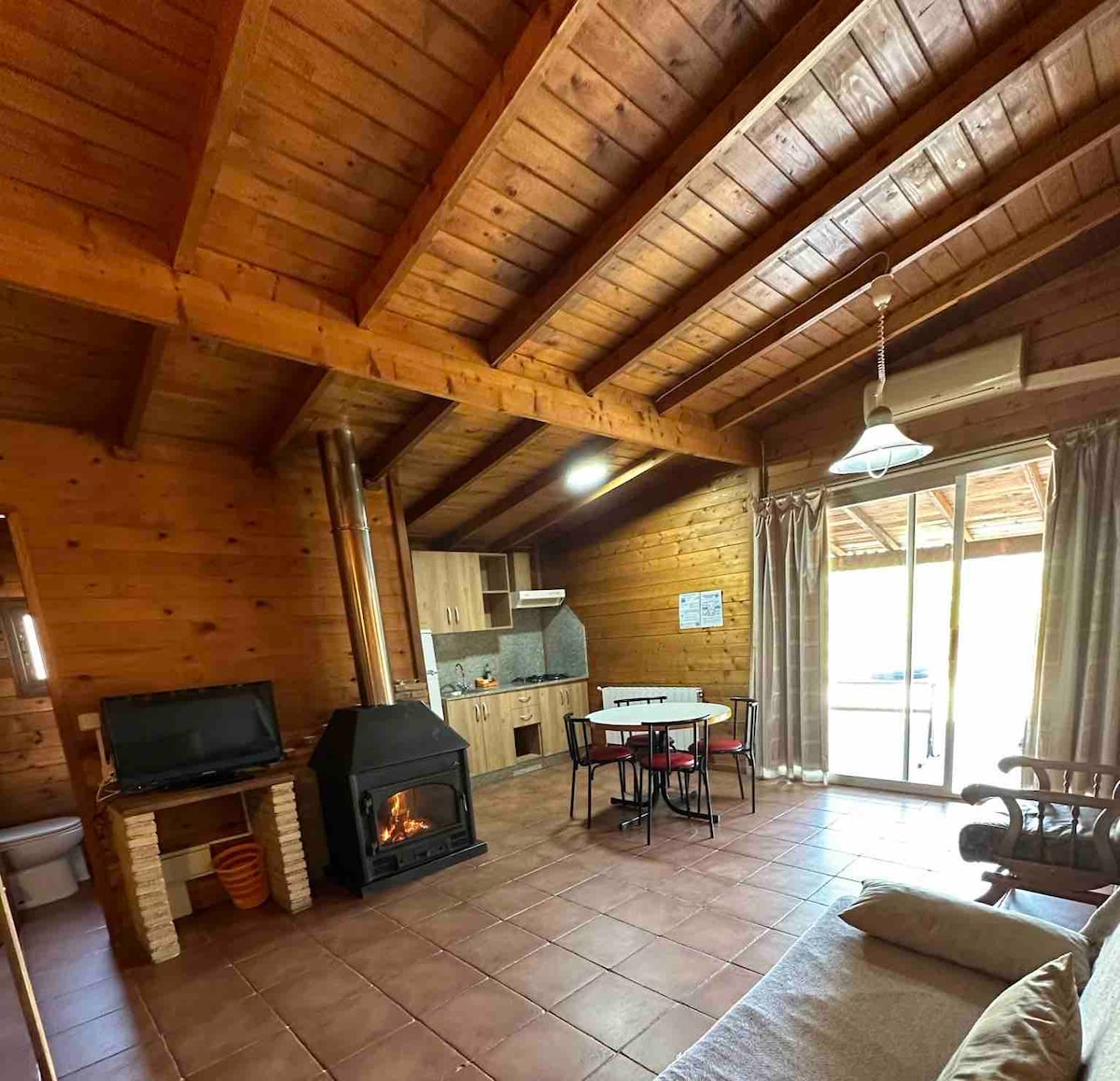 Have you tried the experience of sleeping in a wooden house? Wake up in the morning surrounded by nature. Ideal for families of 2 to 6 people. Features two double bedrooms and a sofa bed in the living room. A bathroom and an equipped kitchen. Equipped with a fireplace for the cold winter in the Sierra de Cazorla, and air conditioning for the warmer months. A porch with mountain views. All our houses are in the same complex, sharing common areas.
