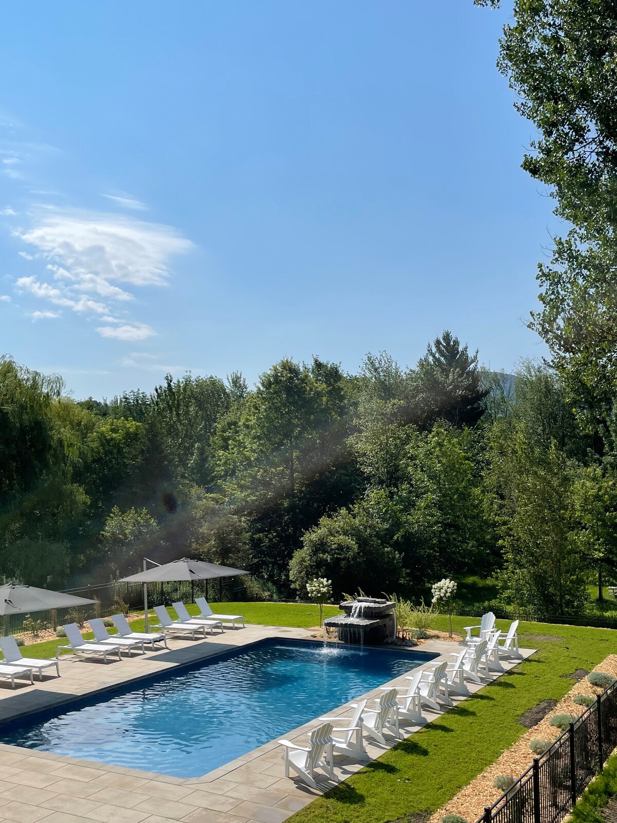 Please read complete description before you book. A short 1 hr. car ride from Mtl will bring you to the picturesque Eastern Townships. This beautiful little century home is located on 76 acres with a forest and meandering streams. The in-ground swimming pool is open from June till September (it's not heated). The house is bright, clean and has a comfy feel to it. It’s fully equipped kitchen, veranda, BBQ, and the campfire is quite the treat. Trails from the backyard will take you into the woods.