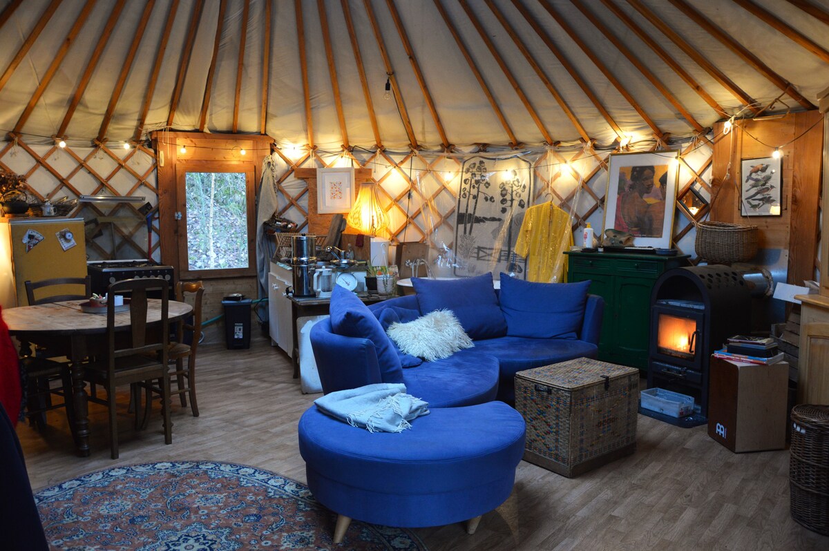 Beautiful cocoon nestled in nature. A night in this refreshing round habitat: Evening by the fire, wake up to the birdsong A double bed, a sofa bed and an extra mattress can also be used as extra beds. Points to note: dry toilet and no hot water (but rest assured, solar shower and bathtub at your disposal to wash) Linens not provided I live in this yurt all year round and I've never been cold. The wood-burning stove is very efficient