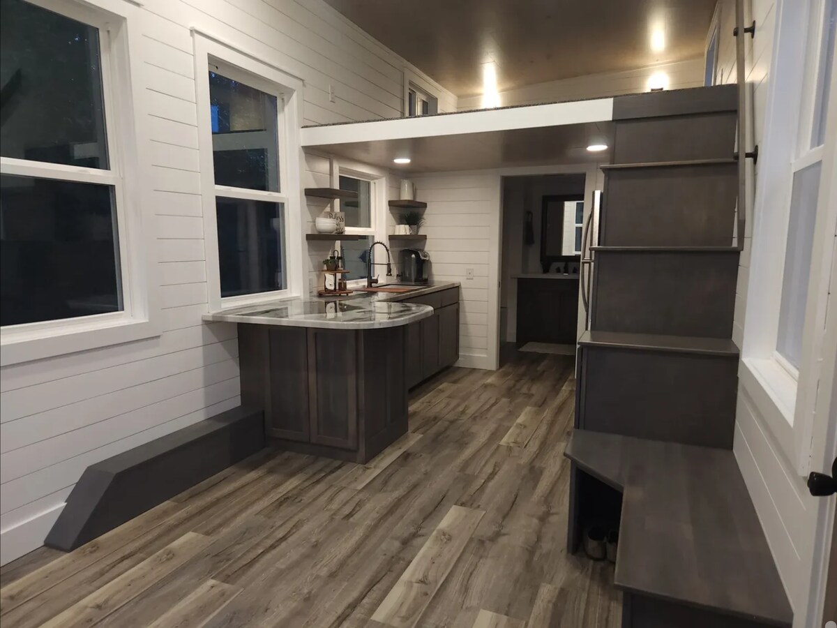 Discover the ultimate blend of comfort and adventure in our charming tiny home trailer. Enjoy the tranquility of the outdoors while still enjoying modern amenities. Tiny home resides in my side yard. The convenience of a full shower, washer, dryer, full size refrigerator and stove to ensure a hassle-free stay. Step outside to find yourself within walking distance to beaches and nature trails. A quick drive takes you to downtown, with top-notch restaurants, wineries and shopping.