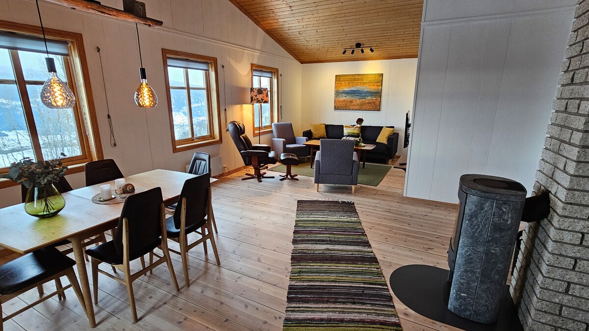 Relax with the whole family at this peaceful residence. The house is located high and undisturbed, overlooking Øyer, Hafjell and the valley. Here you will find rural surroundings, family-friendly, good hiking opportunities, with a short distance, (15-20 min) to Øyerfjellet, Hafjell Alpinsenter, Lilleputthammer and Hunderfossen family park. About 50 min to Kvitfjell Alpine Resort. The house has a new kitchen with all facilities, laundry room with washing machine, wireless network, living room with fireplace, and TV with RiksTV and Chromecast.