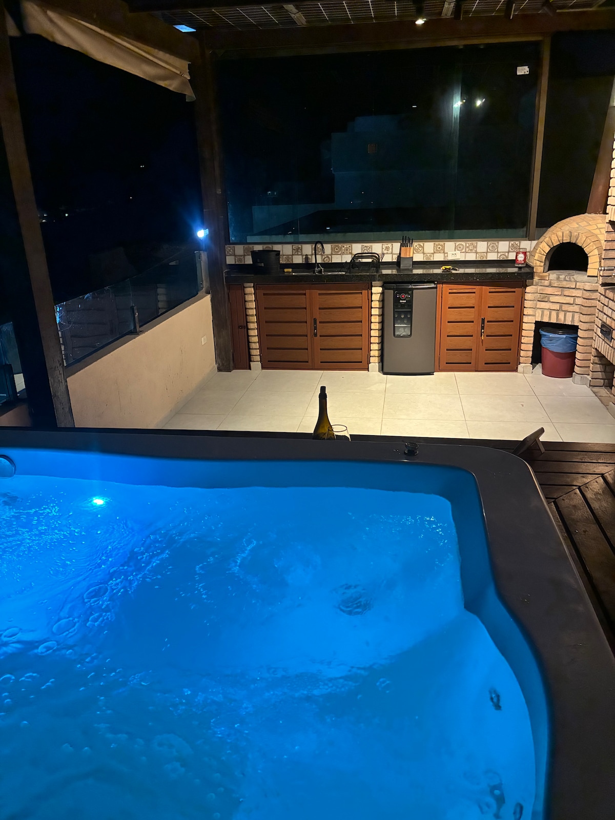 In a gated community with 24-hour security. More than 600 sq. meters of built area (flat), two integrated and independent house structures. We have a deck with a private pool, two leisure areas complete with a table, 5 large-screen smart TVs, fast internet, 2 barbecue grills, refrigerator, freezer, ice maker, beer maker, champagne maker and master suite with a whirlpool. Close to downtown Gravatá, but at the same time it feels like we're far away. Mountain climate in winter and beach climate in summer. Pet-Friendly